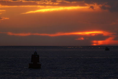 During the stormy trip common terns took good use of the wind and waves to catch fish, while herring gulls followed the boat. A small group of about 10 seals defied the wind on the mudflats, rubbing their coats with sand. Finally at the end of the trip, the sky cleared only just a bit to show the colours of the sunset, like ribbons of light.